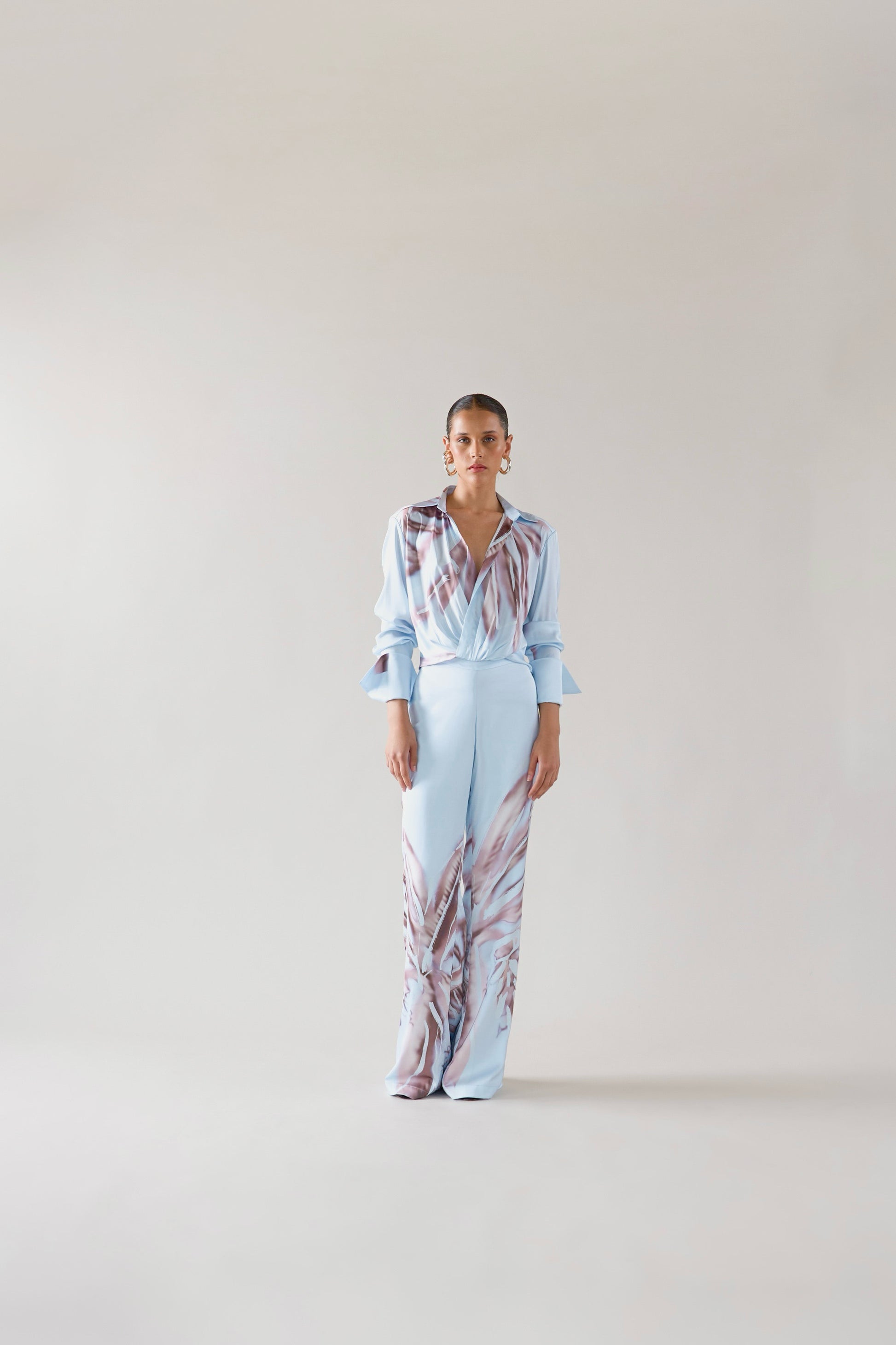 CIUDAD VIVA es una colección que traduce la fuerza botánica en siluetas contemporáneas. Construida sobre una paleta de tonos terrosos, verdes, azules y beige, sus estampados evocan formas naturales reinterpretadas a través de una lente gráfica y moderna.