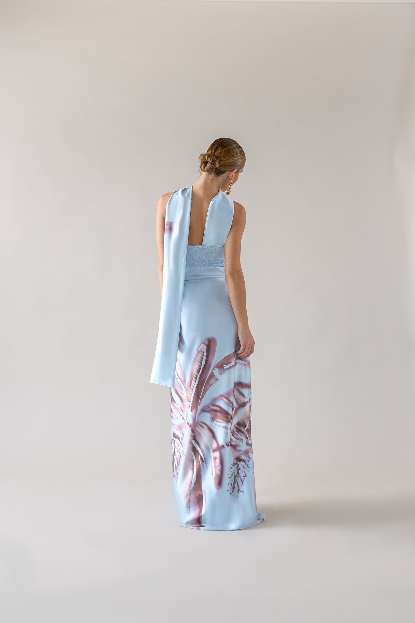 CIUDAD VIVA es una colección que traduce la fuerza botánica en siluetas contemporáneas. Construida sobre una paleta de tonos terrosos, verdes, azules y beige, sus estampados evocan formas naturales reinterpretadas a través de una lente gráfica y moderna.