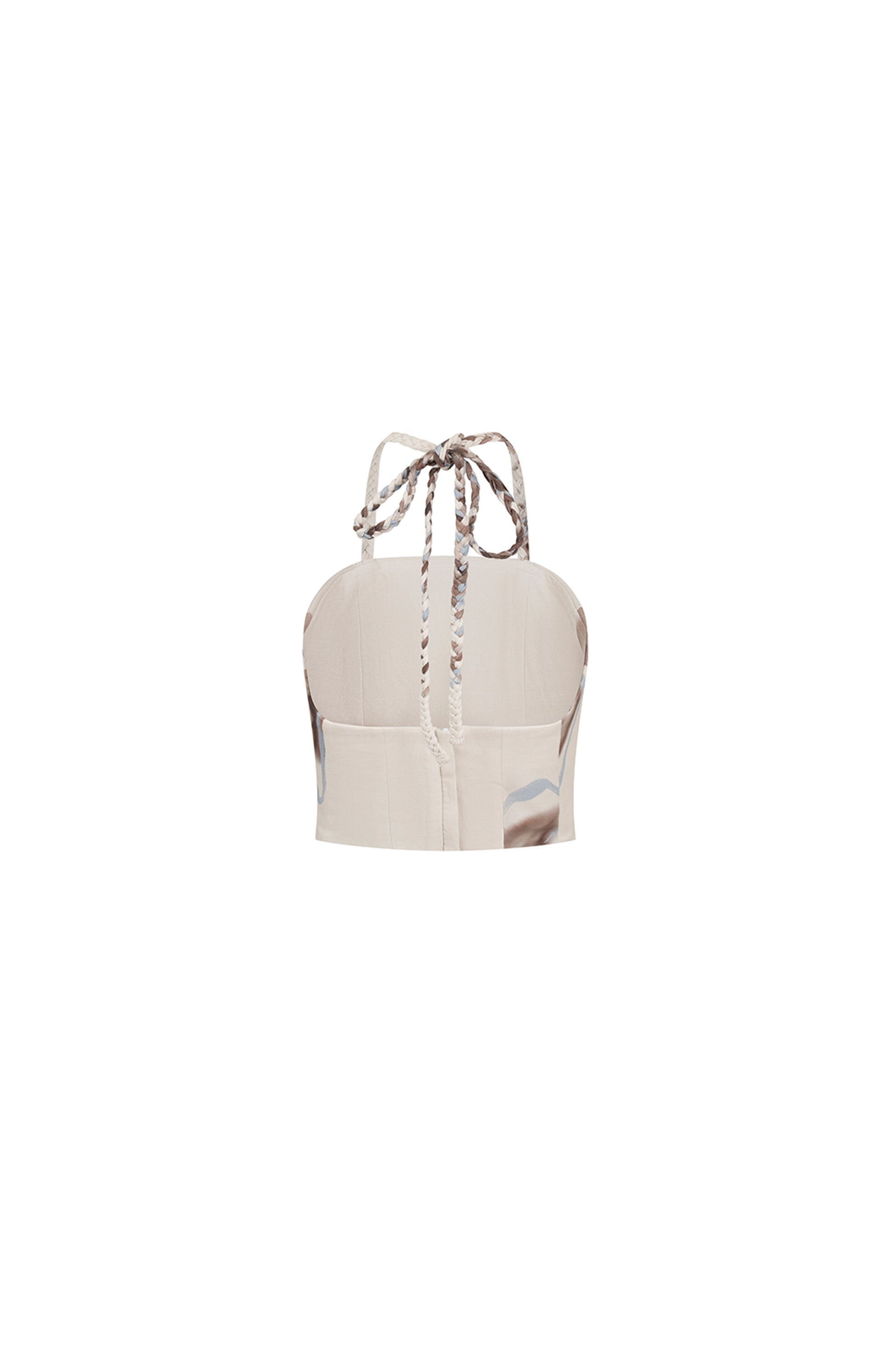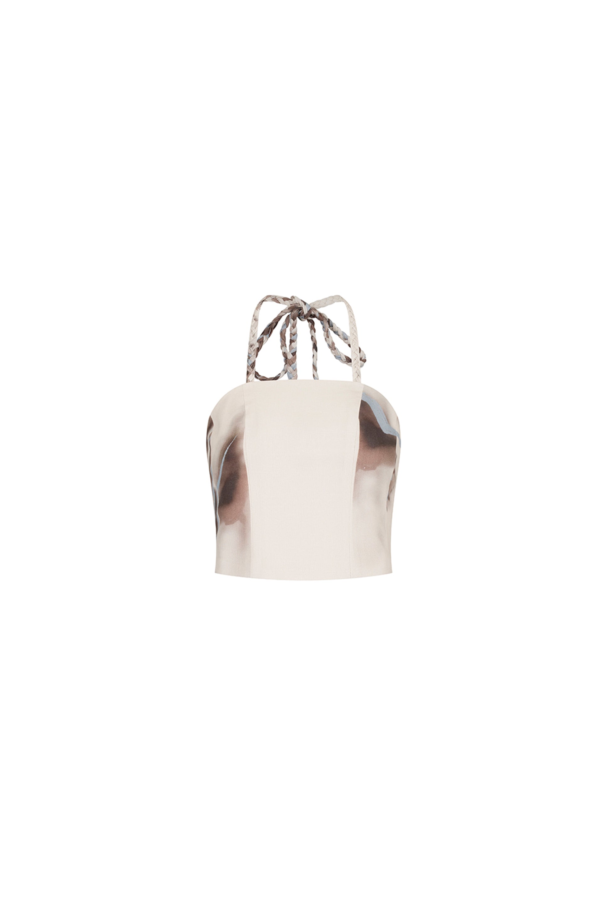 CIUDAD VIVA es una colección que traduce la fuerza botánica en siluetas contemporáneas. Construida sobre una paleta de tonos terrosos, verdes, azules y beige, sus estampados evocan formas naturales reinterpretadas a través de una lente gráfica y moderna.